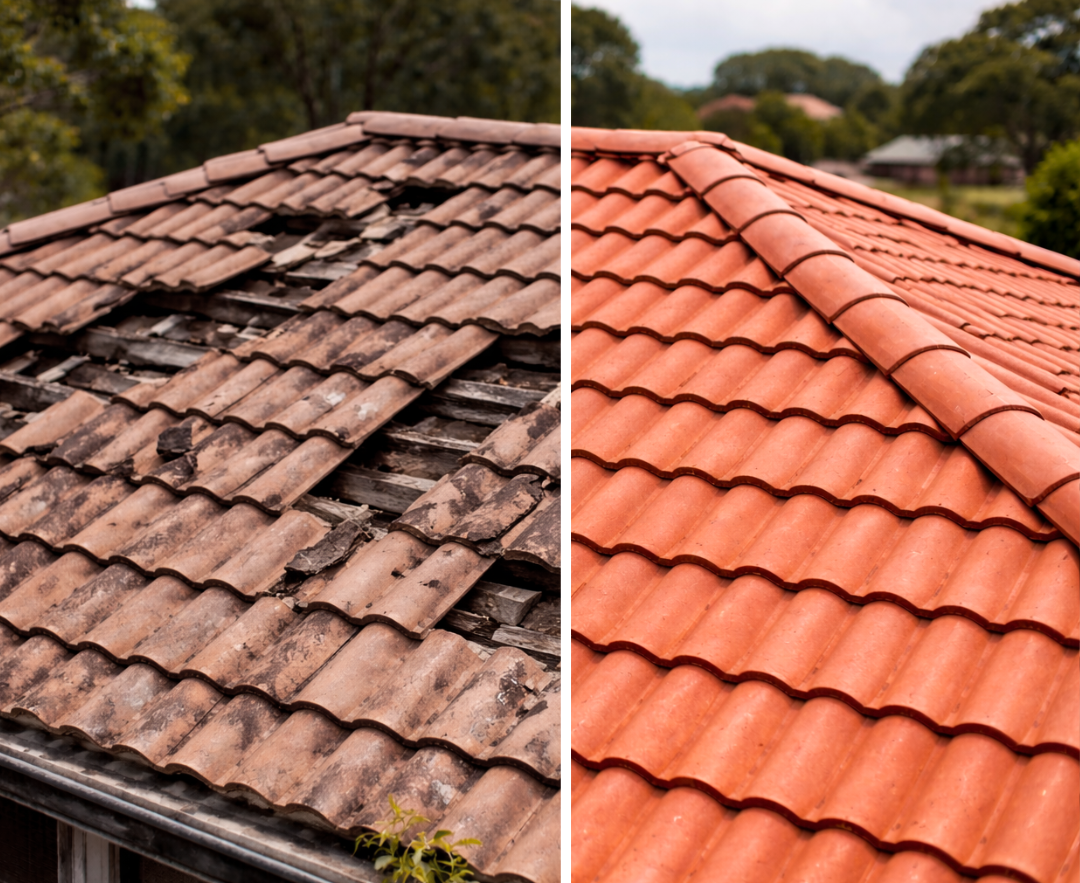 Minor issues like a cracked tile, a rusted roof sheet, isolated leak can often be fixed with a professional repair. However, if your roof is over 20 years old, shows widespread curling/cracked tiles, or has consistent leaking in multiple areas, a full replacement is usually the more cost-effective long term solution.